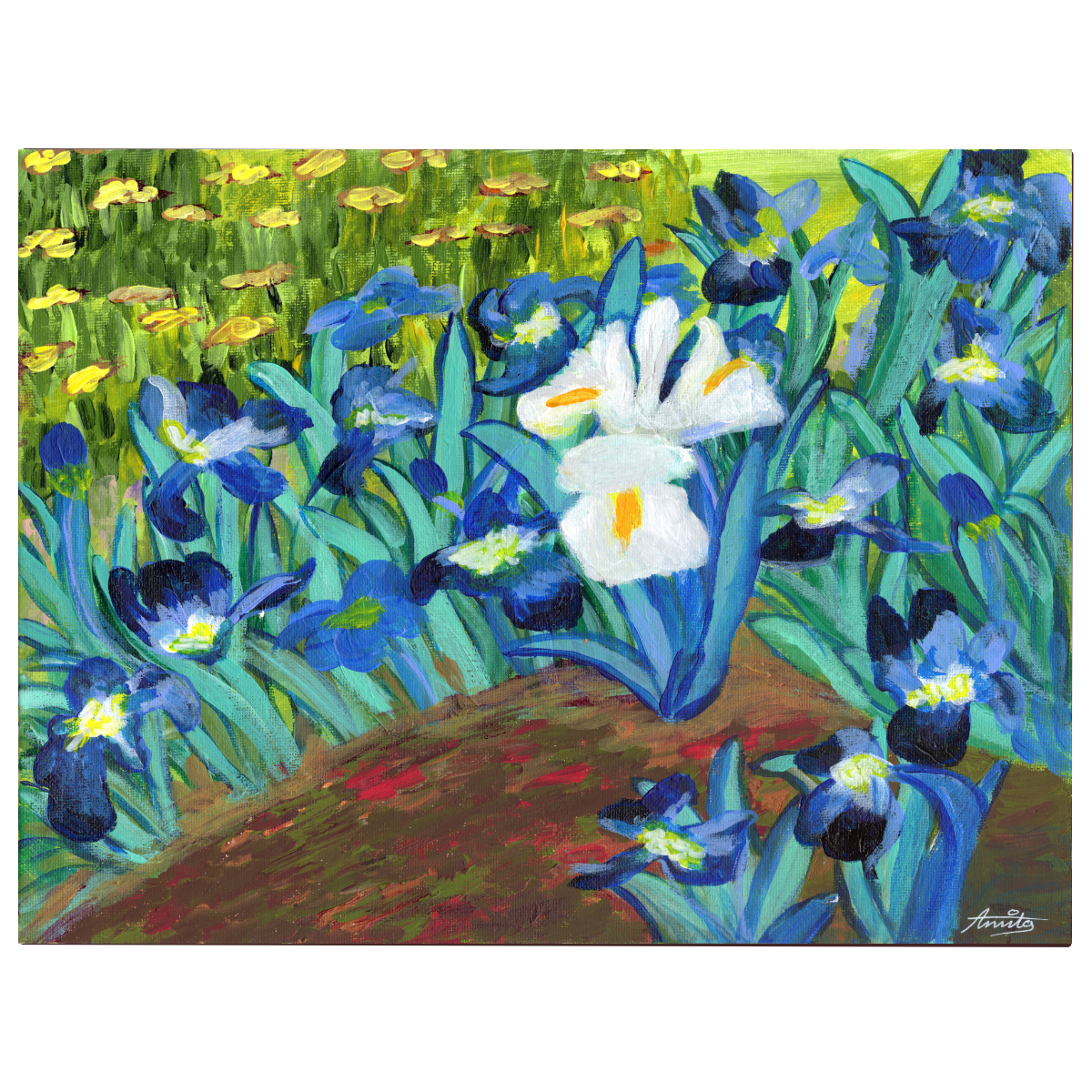 Van Gogh Inspired Sunflower Painting, Iris & Daisy Flowers Artwork, Vase Wall Art Print, Floral Home Decor, Gift for Art Lovers