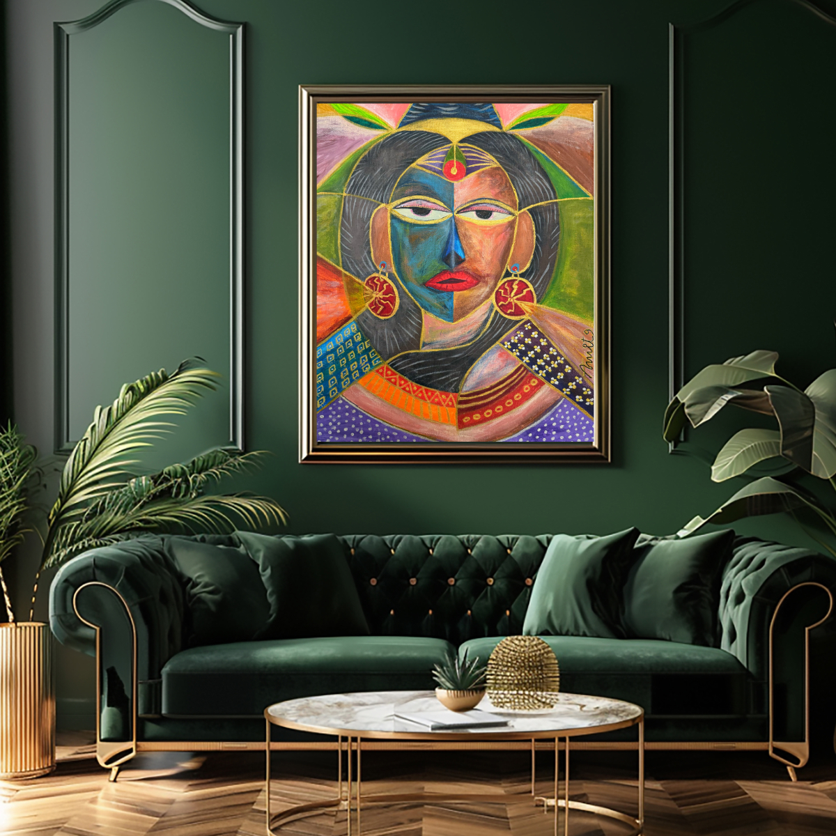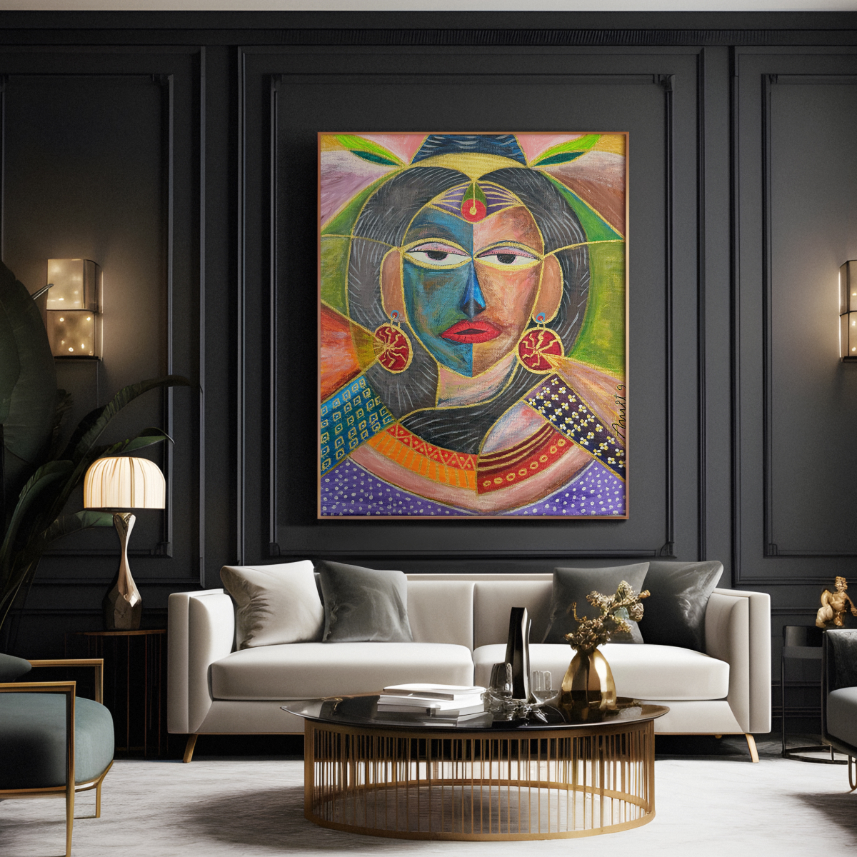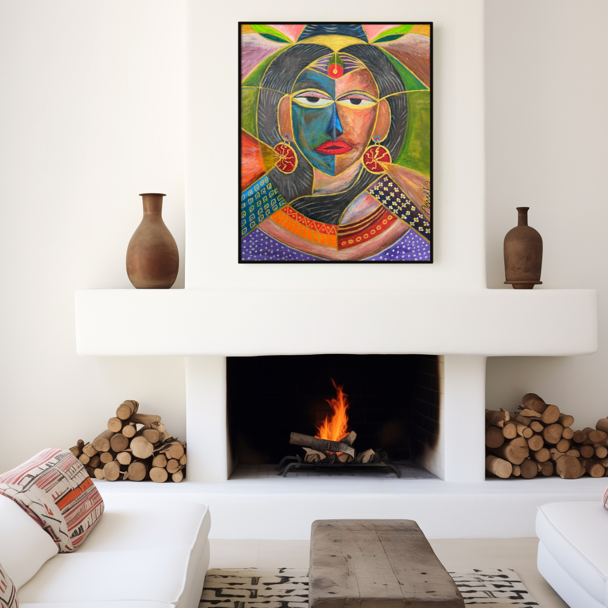 Abstract Face Painting, Celtic Woman Art, Shamanic Wall Art, Modern Mystical Art Home Decor, Spiritual Nature Woman, Figurative Art